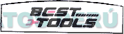 La etiqueta que contiene la denominación BEST TOOLS escrita en letras características, donde se aprecia la palabra BEST seguida de una línea entrecortada recta, y el término TOOLS con la figura estilizada de una herramienta; todo encerrado dentro de un rectángulo irregular; en los colores negro, rojo y blanco; conforme al modelo adjunto