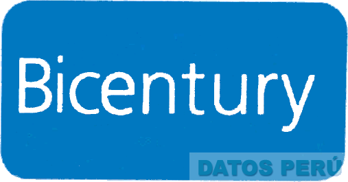 La denominación BICENTURY escrita en letras características en color blanco, sobre una figura rectangular con bordes redondeados de color azul; conforme al modelo adjunto