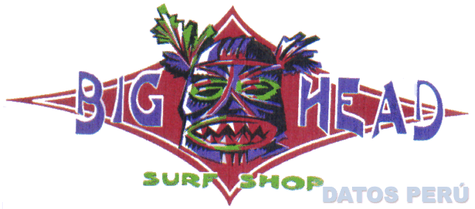 EL LOGOTIPO CONFORMADO POR LA DENOMINACION BIG HEAD SURF SHOP Y MASCARA HAWAIANA CON PLUMAS EN LOS COLORES VERDE, AZUL, ROJO Y BLANCO; CONFORME AL MODELO ADJUNTO