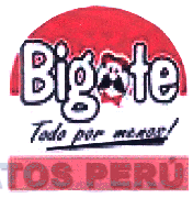 El logotipo conformado por la denominación BIGOTE escrita en letras características, apreciándose al interior de la letra O un rostro, figuras irregulares y frases alusivas al producto (sin reivindicar), en los colores rojo, negro y blanco; conforme al modelo adjunto.