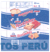 La etiqueta en cuyo interior se aprecian las figuras estilizadas de espigas, vaso de leche, taza de café y tostadas untadas con alimentos, la denominación BIMBO escrita en letras características entre líneas onduladas y la figura estilizada de un oso con gorro de cocinero, las denominaciones CLASICAS y TOSTADAS escritas en letras características entre líneas onduladas paralelas y demás elementos y leyendas informativas del producto; sin reivindicar; todo en los colores blanco, azul, rojo, amarillo, verde y marrón; conforme al modelo adjunto