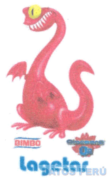 La figura de un personaje característico, en la parte inferior la denominación BIMBO escrita en letras características, apreciándose dos líneas ondulantes debajo y sobre la denominación citada, al lado derecho la denominación OLOCOONS O2 escrita en letras características sobrepuesta a un diseño característico, y debajo de dichas denominaciones se aprecia la denominación LAGETAR escrita en letras características, todo en la combinación de colores rojo, azul, blanco y amarillo; conforme al modelo adjunto