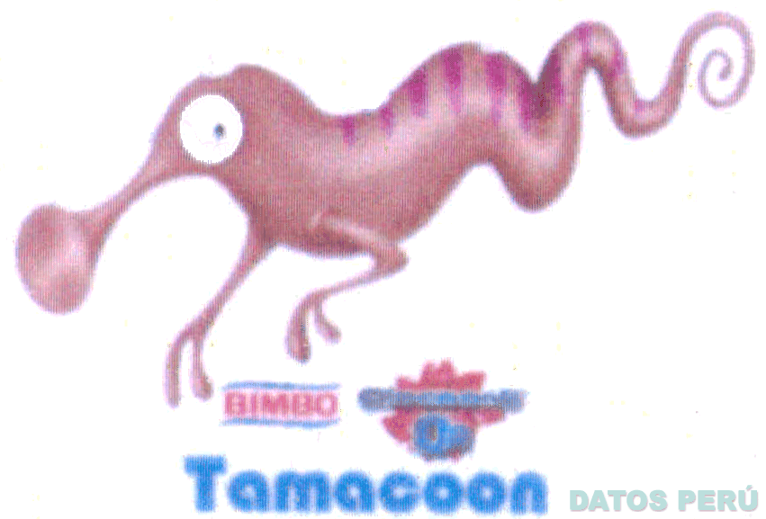 La figura de un personaje característico, en la parte inferior la denominación BIMBO escrita en letras características, apreciándose dos líneas ondulantes debajo y sobre la denominación citada, al lado derecho la denominación OLOCOONS O2 escrita en letras características sobrepuesta a un diseño característico y debajo de dichas denominaciones se aprecia la denominación TAMACOON, todo en la combinación de colores rojo, azul, blanco, marrón, rosado y fucsia; conforme al modelo adjunto