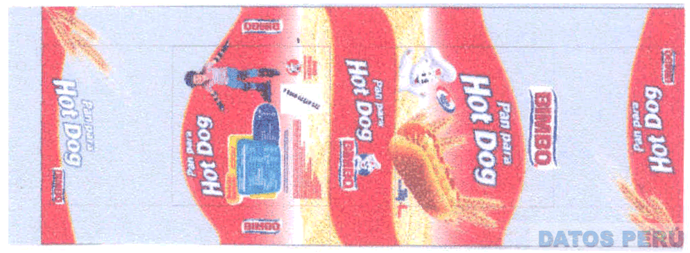 La etiqueta en cuyo interior se aprecian las figuras estilizadas de espigas, un pan con salchicha y una niña patinando, al denominación BIMBO escrita en letras características y la figura estilizada de un oso con gorro de cocinero, la denominación PAN PARA HOT DOG escrita en letras características, líneas onduladas y demás elementos y leyendas informativas del producto sin reivindicar; todo en los colores blanco, celeste, gris, azul, rojo, amarillo, anaranjado y marrón; conforme al modelo adjunto