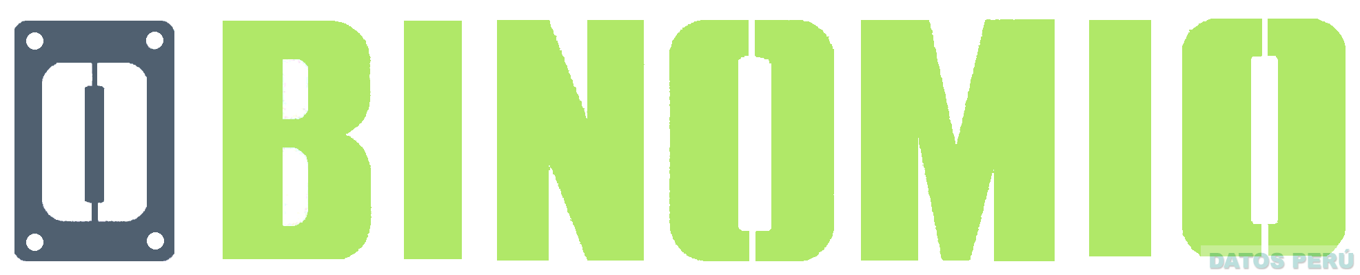 El logotipo conformado por la denominación BINOMIO escrita en letras características, acompañada en el lado izquierdo de la representación estilizada de la letra O encerrada en una figura cuadrangular y que contiene cuatro círculos pequeños en los cuatro extremos, todo en la combinación de colores verde (pantone process coated DS 273-8C) y azul (pantone process coated DS 202-1C); conforme al modelo adjunto