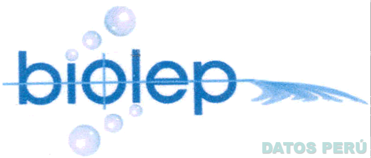 La denominación BIOLEP escrita en letras características atravezada por dos líneas, apreciándose una de ellas representando una pluma, y las figuras de burbujas, todo en la combinación de colores azul, gris, celeste y blanco; conforme al modelo adjunto