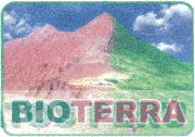 El logotipo conformado por la denominación BIOTERRA escrita en letras características, en el fondo se aprecia un paisaje conformado por una montaña, cielo y nubes, todo en la combinación de colores verde en distintas tonalidades, marrón, blanco, azul y rojo; conforme al modelo adjunto