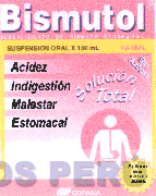 El logotipo conformado por la denominación BISMUTOL escrita en letras características y la letra R dentro de un círculo sin reivindicar, debajo los términos ACIDEZ, INDIGESTIÓN MALESTAR ESTOMACAL (todos sin reivindicar), una figura circular que contiene la representación de medio cuerpo humano, en la parte inferior la denominación COFANA escrita en letras características y una figura irregular, además frases alusivas al producto sin reivindicar, todo dentro de una figura rectangular con un fondo irregular y en la combinación de colores rosado en diversas tonalidades, amarillo, blanco y negro; conforme al modelo adjunto