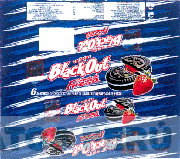 La denominación GALLETAS BLACKOUT CORAZON DE FRESA escrita en letras características y la representación estilizada de una galleta partida por la mitad en cuyo lado derecho se aprecia una fresa todo esto se repite tres veces y la frase 6 SANDWICH DE CHOCOLATE RELLENO DE VAINILLA Y MERMELADA DE FRESA escrita en letras características en los colores rojo, blanco, verde, negro, azul, celeste y plomo; conforme al modelo adjunto