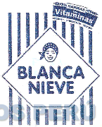 El logotipo conformado por la denominación BLANCA NIEVE escrita en letras características y la figura estilizada de una cabeza de mujer, todo dentro de una figura geométrica irregular, en el fondo se aprecian líneas verticales; en el extremo superior derecho se observan dos espigas y figuras rectangulares conteniendo términos alusivos al producto, todo en los colores blanco y azul; conforme al modelo adjunto