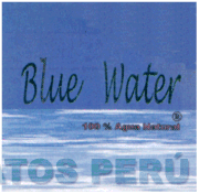LA FIGURA CONSTITUIDA POR UN RECTANGULO DENTRO DE EL LA DENOMINACION BLUE WATER, DEBAJO LA LEYENDA 100% AGUA NATURAL, SIN REIVINDICAR, EN LOS COLORES AZUL, PLATEADO, ROJO, NEGRO, CELESTE Y BLANCO, CONFORME AL MODELO ADJUNTO,