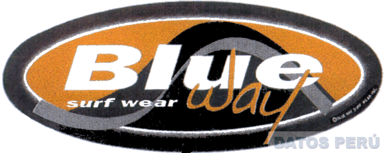 EL LOGOTIPO CONFORMADO POR LA DENOMINACION BLUE WAY ESCRITA EN LETRAS CARACTERISTICAS, EN LA PARTE INFERIOR LA FRASE SURF WEAR TODO DENTRO DE UNA FIGURA ELIPSE, EN LOS COLORES GRIS, NEGRO Y LADRILLO; CONFORME AL MODELO ADJUNTO,
