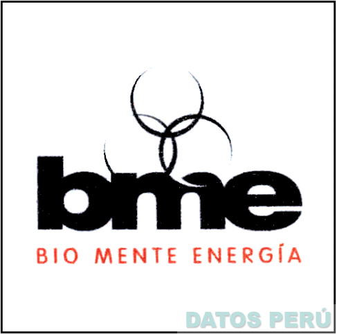 El logotipo conformado por la denominación BME escrita en letras características debajo BIO MENTE ENERGÍA, en la parte superior círculos entrelazados, todo en los colores gris y rojo; conforme al modelo adjunto
