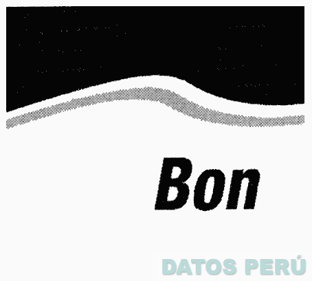 La etiqueta conformada por la denominación BON escrita en letras características, sobre la cual se aprecian diversas franjas ondulantes irregulares, todo en la combinación de colores negro, blanco y plomo; conforme al modelo adjunto