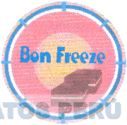 El logotipo conformado por la denominación BON FREEZE escrita en letras características dentro de un círculo, que encierra a su vez a dos círculos más, en la parte inferior la figura de dos barras de chocolate relleno y ocho líneas intercaladas en el borde; todo en los colores amarillo, rosado, blanco, azul y marrón; conforme al modelo adjunto
