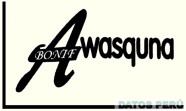 El logotipo conformado por la denominación AWASQUNA escrita en letras características, dentro de la letra A se aprecia la denominación BONIF escrita en letras características, sobre un fondo rectangular con un marco incompleto, en la combinación de colores negro (pantone de 1-9C) y beige (pantone de 324-4C); conforme al modelo adjunto