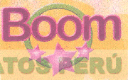 El logotipo conformado por la denominación BOOM escrita en letras características, detrás se aprecia un círculo y debajo la representación de tres estrellas, todo en los colores morado, verde, rosado y amarillo; conforme al modelo adjunto