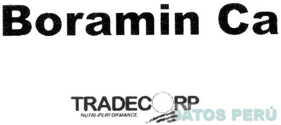 El logotipo conformado por la denominación BORAMIN CA escrita en letras características; en la parte inferior se aprecia la denominación TRADECORP escrita en letras características; en cuya letra O se observa una figura circular, debajo de la cual se aprecian tres trazos irregulares y en la parte inferior la denominación NUTRI-PERFORMANCE escrita en letras características; sin reivindicar colores; conforme al modelo adjunto
