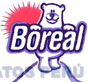 El logotipo conformado por la denominación BOREAL escrita en letras características delineadas con borde de color azul y celeste e interior blanco y la figura de un oso polar parado sobre un montículo de nieve en color azul, celeste y blanco y la figura de un sol en color rojo (pantone 192); conforme al modelo adjunto