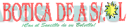La denominación BOTICA DE A SOL (sin reivindicar) escrita en letras características donde la letra S está representada por el símbolo S/. y la letra O por la representación estilizada del sol, debajo se aprecia la frase ¡CON EL SENCILLO DE SU BOLSILLO! (sin reivindicar la frase ¡CON EL SENCILLO DE SU BOLSILLO!), todo en los colores rojo, verde y amarillo; conforme al modelo adjunto