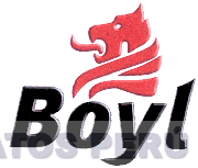 El logotipo conformado por la denominación BOYL escrita en letras características de color negro y en la parte superior la representación estilizada del perfil de una cabeza de león de color rojo con fondo blanco; conforme al modelo adjunto
