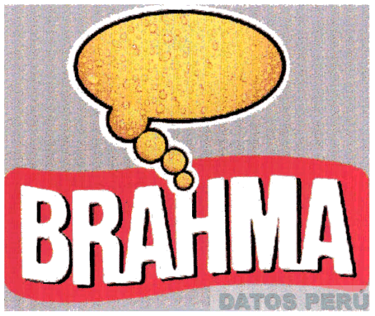 La etiqueta conformada por la denominación BRAHMA escrita en letras características de color blanco dentro de una franja ligeramente ondeada de color rojo, sobre la cual se aprecia la representación estilizada de una figura ovalada y tres círculos, en los colores negro, amarillo en degradé, todo sobre un fondo de color plomo; conforme al modelo adjunto