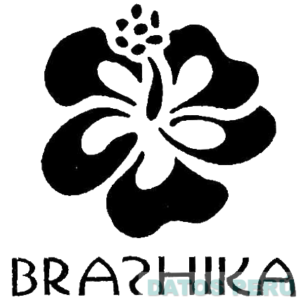 El logotipo conformado por la figura estilizada de una flor con cinco pétalos y un pistilo que sobresale hacia arriba con siete semillas, debajo la denominación BRASHIKA escrita en letras características donde la letra S se aprecia volteada, todo en los colores blanco y negro; conforme al modelo adjunto