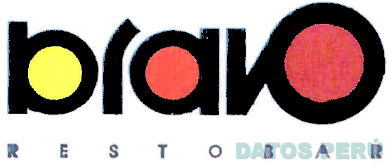 El logotipo conformado por la denominación BRAVO RESTOBAR escrita en letras características, en colores amarillo, anaranjado, rojo y negro; conforme al modelo adjunto