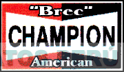 La etiqueta rectangular que contiene la denominación BREC escrita en letras características de color blanco y entre comillas, debajo la denominación CHAMPION en letras de color negro sobre fondo blanco y por último la denominación AMERICAN escrita en letras características de color blanco sobre fondo rojo y negro, todo en los colores rojo, negro y blanco; conforme al modelo adjunto; se reivindica los colores rojo, negro y blanco