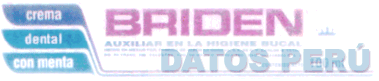 LA ETIQUETA RECTANGULAR DE FONDO BLANCO CONTENIENDO LA DENOMINACION BRIDEN EN LETRAS CARACTERISTICAS DE COLOR FUCSIA, A SU IZQUIERDA, TRES DISEÑOS DE FORMA IRREGULAR EN COLUMNA, EL PRIMERO DE FONDO MORADO CONTENIENDO LA DENOMINACION CREMA, EL SEGUNDO DE FONDO AZUL PETROLEO CLARO CONTENIENDO LA DENOMINACION DENTAL Y EL TERCERO DE FONDO CELESTE PETROLEO CONTENIENDO LA DENOMINACION CON MENTA, Y EN LA PARTE INFERIOR TRES LINEAS HORIZONTALES QUE NACEN DE LOS TRES DISEÑOS IRREGULARES MENCIONADOS, CONFORME AL FACSIMIL ADJUNTO,