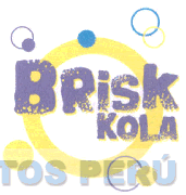 El logotipo constituido por la denominación BRISK KOLA escrita en letras características y la representación de un círculo rodeado de burbujas, en la combinación de colores amarillo, morado y turquesa; conforme al modelo adjunto