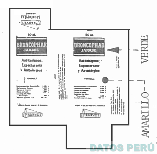 La denominación BRONCOPHAR y envoltura en los colores amarillo y verde, conforme al modelo adjunto