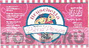 El logotipo conformado por el diseño de una etiqueta cuadrangular conteniendo la denominación BRUSCHETTA DE LA COCINA DE PATRICIA PLEVISANI INVERSIONES AREZZO S.A.C. y demás frases alusivas al producto y el diseño de cuadrados en la parte superior e inferior de dicha etiqueta, la figura de círculos conteniendo y el diseño estilizado de una pizza y una figura irregular, todo en colores rojo, amarillo, verde, blanco, negro; conforme al modelo adjunto.