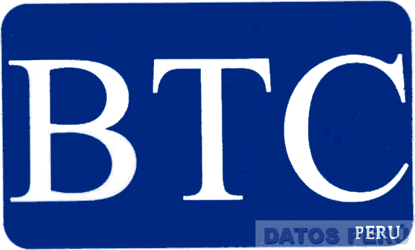 El logotipo conformado por la denominación BTC PERU escrita de letras características de color blanco sobre un fondo azul; conforme al modelo adjunto