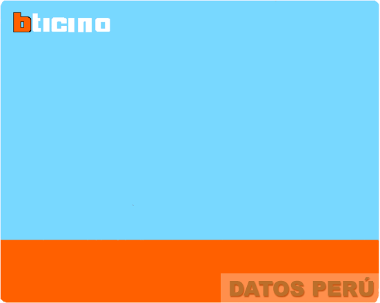 La etiqueta que contiene en la parte superior, una figura rectangular con la denominación BTICINO escrita en letras características y en la parte inferior una figura rectangular, en los colores blanco, anaranjado (Pantone 165) y celeste (Pantone 306); conforme al modelo adjunto