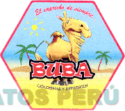 El logotipo conformado por la denominación BUBA escrita en letras características sobre la representación estilizada de un camello, y un paisaje conformado por dos palmeras, el sol y cerros; en la parte superior la frase EL CAPRICHO DE SIEMPRE... escrita en letras características y en la parte inferior las denominaciones GOLOSINAS y REFRESCOS (sin reivindicar), escritas en letras características, todo dentro de una figura hexagonal en los colores rojo, negro, blanco, amarillo, beige, verde, marrón y celeste en diversas tonalidades; conforme al modelo adjunto