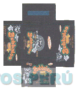 La etiqueta conteniendo el diseño estilizado de un gato, la denominación BUBBALOO-CHICLE BOMBA NARANJA SALVAJE y diseño de una goma de mascar conteniendo líquido en los colores anaranjado, gris, verde, negro y blanco; conforme al modelo adjunto