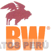 El logotipo conformado por la denominación BW escrita en letras características, en la parte derecha se aprecia la letra R encerrada en un círculo (sin reivindicar), en la parte superior se aprecia la figura estilizada de un búfalo con alas, todo en los colores ocre y anaranjado; conforme al modelo adjunto
