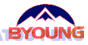 El logotipo conformado por la denominación BYOUNG escrita en letras características y una figura irregular; en los colores anaranjado y azul; conforme al modelo adjunto