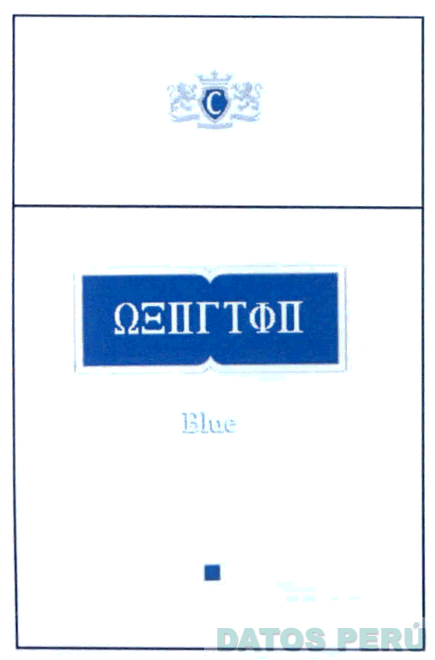 LA ETIQUETA COMPUESTA POR LA FIGURA DE DOS LEONES RAMPANTES CON ESCUDO DENTRO DE LA CUAL SE ENCUENTRA LA LETRA C EN LOS COLORES PLATEADO Y AZUL; DEBAJO DE LA CUAL APARECE LA ETIQUETA DE COLOR AZUL COMPUESTA POR CARACTERES Y SIMBOLOS EN COLOR BLANCO Y EN LA PARTE INFERIOR SE ENCUENTRA LA DENOMINACION BLUE; CONFORME AL MODELO ADJUNTO
