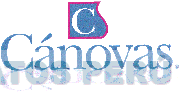 El logotipo conformado por la denominación CÁNOVAS escrita en letras características y dispuesta por duplicado, y una figura irregular conteniendo la letra C escrita en forma característica, todo en los colores azul, fucsia, blanco y gris, conforme al modelo adjunto