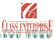 El logotipo conformado por la denominación C CLASS ENTERPRISE DEL PERÚ escrita en letras características, donde la letra C esta dentro de una figura cuadrangular y debajo una línea, debajo de la denominación CLASS ENTERPRISE se aprecia otra línea, todo en los colores rojo, azul y blanco; conforme al modelo adjunto
