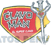 El logotipo conformado por la denominación CLAVOMAN EL SUPER CLAVO en el interior de una figura irregular, a la derecha, la figura humanizada de un clavo con un símbolo que contiene la letra C; todo en los colores negro, blanco, amarillo, rojo y gris; conforme al modelo adjunto