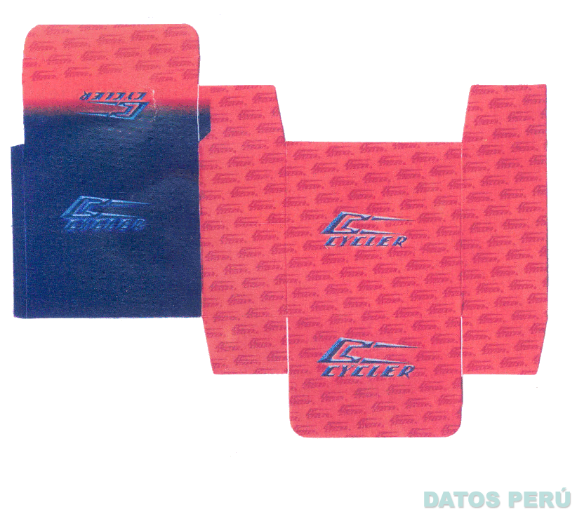 La caja empaque de colores rojo y azul que contiene la denominación CYCLER escrita en letras características y la letra C escrita en forma característica en colores azul y celeste, signo que se repite en todo el fondo rojo de la caja en color rojo oscuro; conforme al modelo adjunto