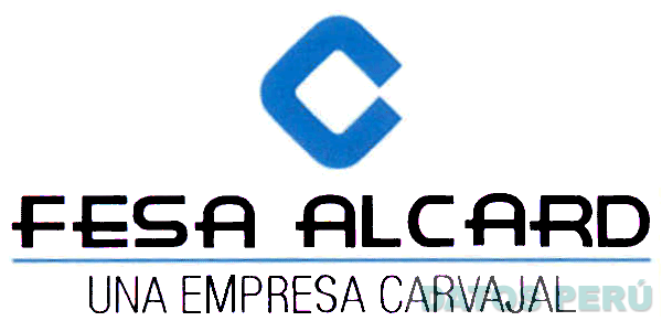 La denominación FESA ALCARD UNA EMPRESA CARVAJAL escrita en letras características, y el diseño de una figura romboidal incompleta que forma la letra C, todo en los colores azul y negro; conforme al modelo adjunto