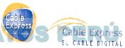 El diseño estilizado de una pantalla de televisión de color azul y amarillo, con la denominación CABLE EXPRESS EL CABLE DIGITAL escrita en letras características y a la derecha la denominación citada en color gris y azul, con tres líneas amarillas en la parte superior; conforme al modelo adjunto