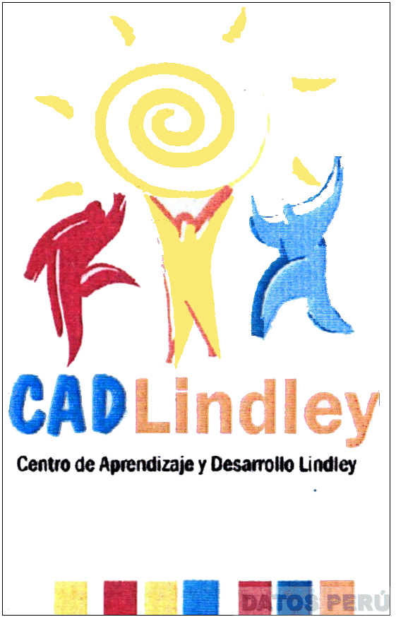 El logotipo conformado por la denominación CAD LINDLEY escrita en letras características, acompañada de la representación estilizada de tres personajes, de la figura estilizada del sol, de ocho figuras cuadrangulares en la parte inferior y de la frase CENTRO DE APRENDIZAJE Y DESARROLLO LINDLEY; en la combinación de colores rojo, amarillo, anaranjado, azul, celeste, blanco, negro y beige; conforme al modelo adjunto