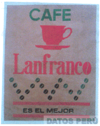 LA DENOMINACION CAFE LANFRANCO EN LETRAS ESPECIALES CUYA LETRA O REPRESENTA LA FIGURA DE UN GRANO DE CAFE; ASIMISMO SE APRECIA LA DENOMINACION ES EL MEJOR Y LAS FIGURAS DE GRANOS DE CAFE, LA FIGURA DE UNA TAZA Y UN PLATO, EN ESPECIAL DISPOSICION, EN LA COMBINACION DE LOS COLORES MARRON, VERDE Y ANARANJADO; CONFORME AL MODELO ADJUNTO,