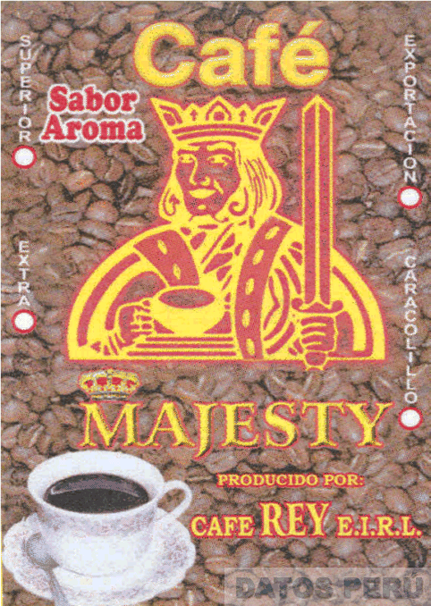 LA DENOMINACIÓN CAFÉ MAJESTY, SOBRE LA LETRA M SE APRECIA UNA CORONA, EN EL MARGEN SUPERIOR IZQUIERDO EL TÉRMINO SABOR AROMA Y EN EL MARGEN INFERIOR DERECHO PRODUCIDO POR