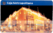 El logotipo conformado por una figura rectangular en cuya parte superior se aprecia la denominación CAJA METROPOLITANA escrita en letras características precedida por la figura de un escudo, ambos sobre una franja horizontal, asimismo, en la parte central se observa la fotografía del frontis de un edificio republicano iluminado; todo en los colores azul, blanco, anaranjado, negro y amarillo; conforme al modelo adjunto